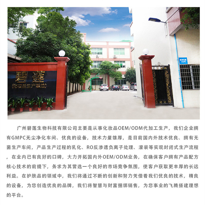 廣州碧蓮生物科技有限公司正式成立于2015年,位于風(fēng)景秀麗、人杰地靈的廣州市白云區(qū)。公司是一家集產(chǎn)品研發(fā)、生產(chǎn)、經(jīng)營化妝品的企業(yè),擁有國外與國內(nèi)的科研基地與自己的優(yōu)良團(tuán)隊(duì),產(chǎn)品包含了美容護(hù)膚及個人用品等多個領(lǐng)域。